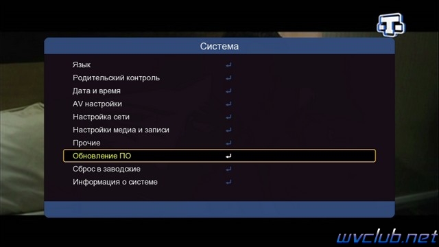 2.Перейдіть до наступного пункту меню: Меню - Система - Оновлення ПЗ - Оновлення через USB.