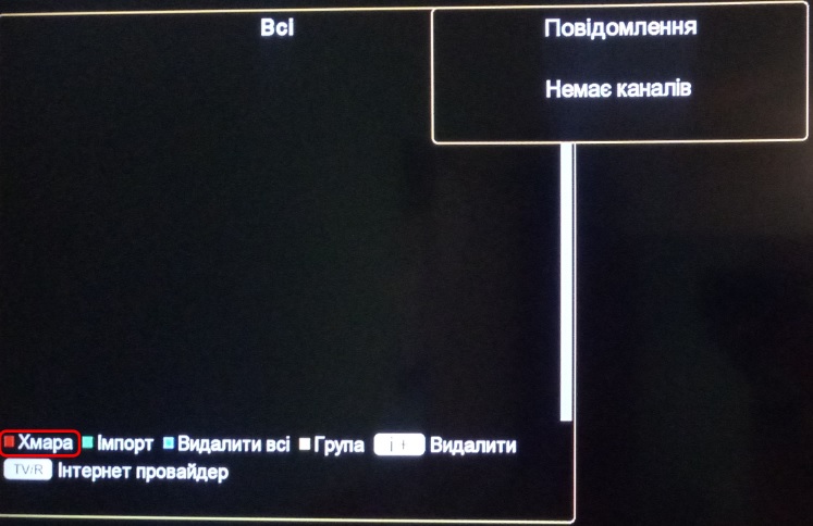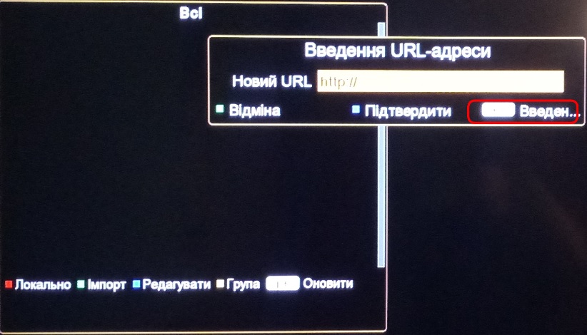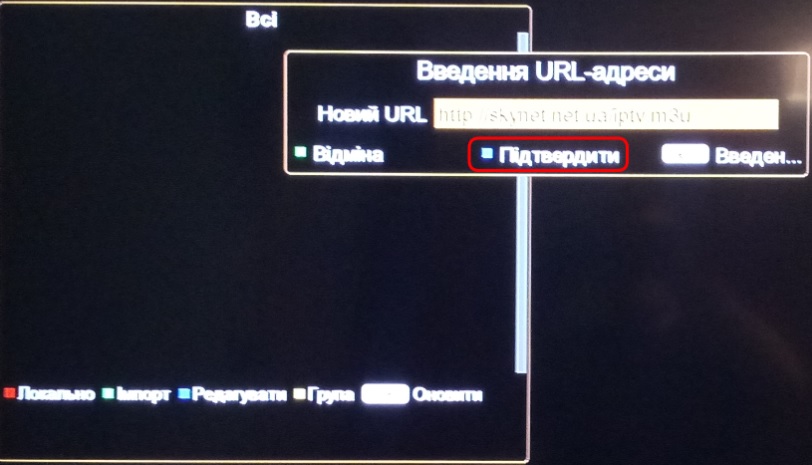 6.Для підтвердження натисніть блакитну кнопку на пульті керування, після цього якщо посилання було введено вірно, у Вас відобразиться список каналів.